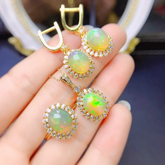 Natural Opal Jewelry Set | 8x10mm Gemstone Ring, Earrings, Pendant